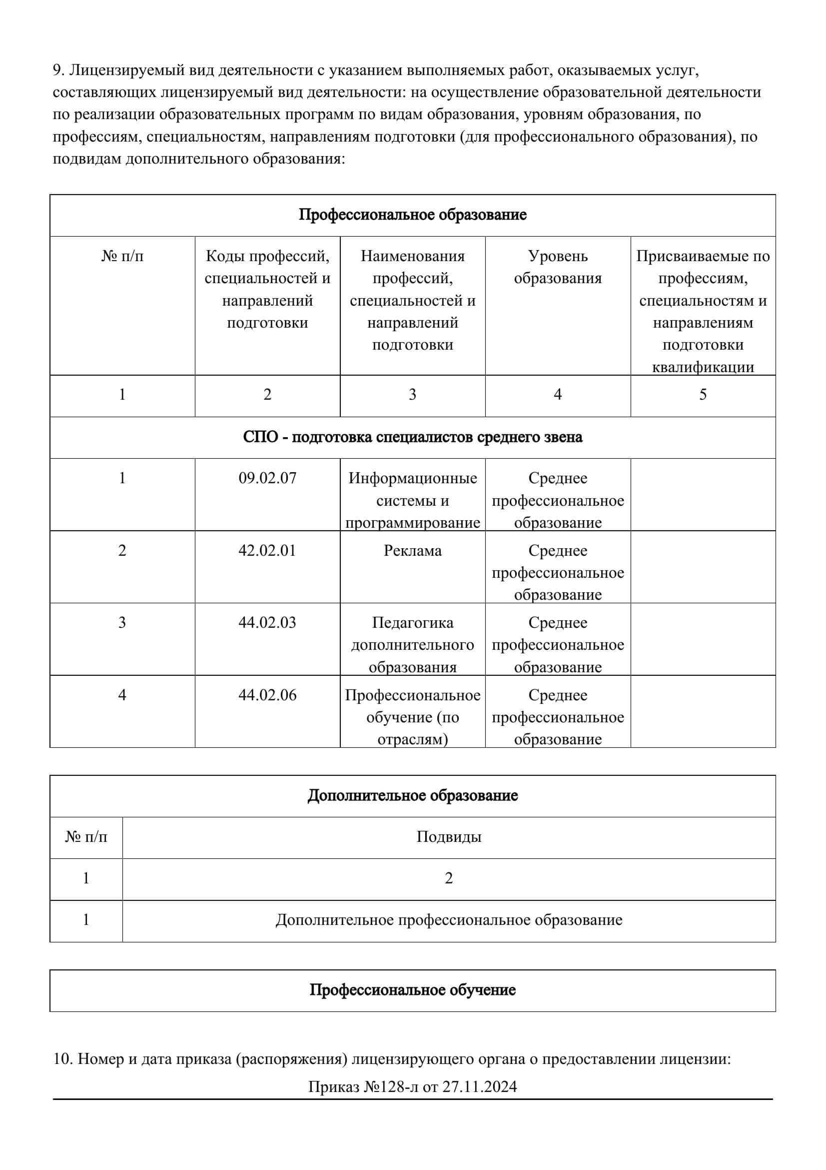 5 действующих образовательных лицензий